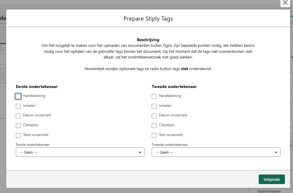 - Handmatig aangeven welke Stiply-ondertekentags gebruikt moeten worden.