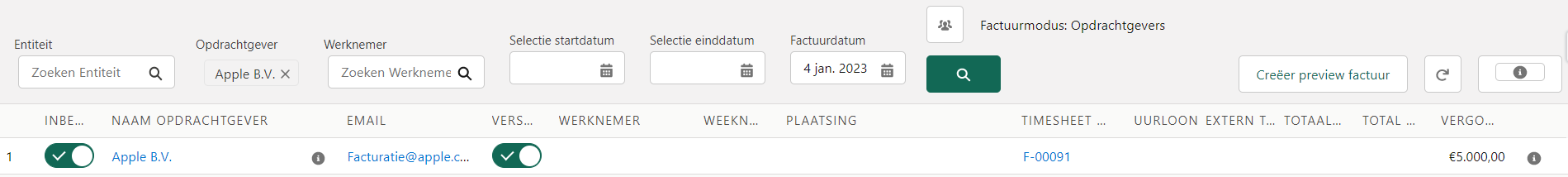 Als er een factuur gemaakt moet worden die niet aan een Timesheet gekoppeld moet worden (Zoals een extra factuur voor de werving en selectie van een werknemer), dan kan er een handmatige factuur gemaakt worden.