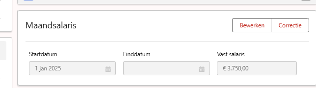 Het is niet mogelijk om van vast salaris te wisselen gedurende een periode. Indien dit wel nodig is, kan de medewerker administratief uit dienst worden gemeld, en onder een nieuw dienstverband / nieuwe medewerker in Nmbrs worden verloond onder een nieuw salaris.