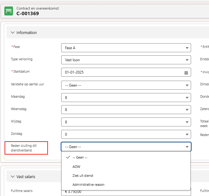 Sinds 2025 is het veld 'Reden sluiting dit dienstverband' op contact toegevoegd.