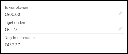 Op het verrekenbare bedrag zal dit bedrag worden ingehouden van het totale bedrag en zal het openstaande bedrag ook automatisch worden geüpdatet.