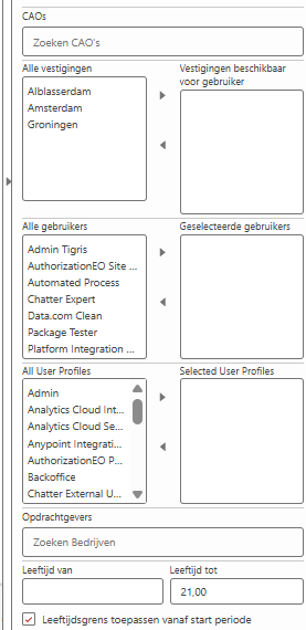 Filtering: Vestiging, CAO, opdrachtgever, leeftijd