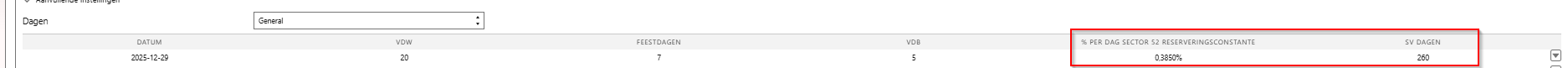 Onder Aanvullende instellingen tref je het aantal ingestelde vakantiedagen en feestdagen voor dat jaar. Met dit aantal dagen zal ook gerekend worden op de kostprijsberekeningen (voor de reserveringspercentages).