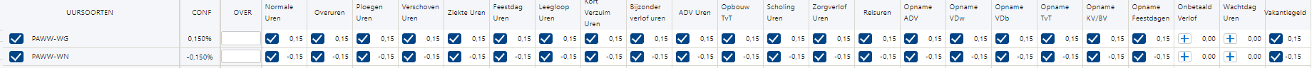 Let op: Als je de vinkjes aan de linkerkant van de instelling aanvinkt, zullen de vinkjes in de gehele rij aangevinkt worden voor ieder uursoort